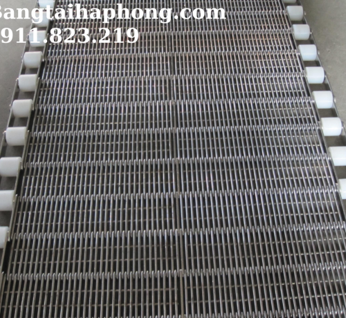Băng Tải Lưới Inox EyeLink Cánh Biên Chạy Bằng Xích Inox Và Con Lăn Nhựa