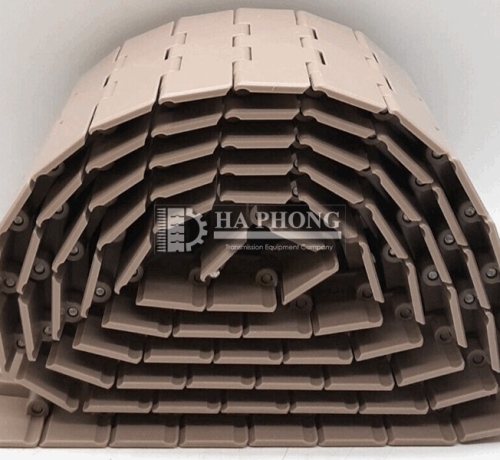 Là dòng xích nhựa bản rộng lớn chạy bằng nhông giống HS-820 nằm chống lật băng tải, tải sản phẩm lớn, tải trọng nặng…