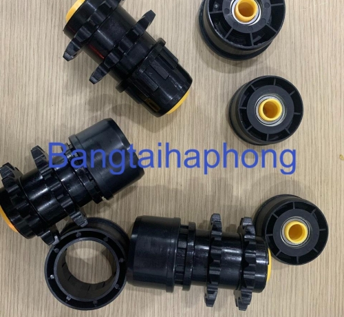 Vật liệu chế tạo gồm nhựa PVC phủ con lăn thép, hoặc bằng inox